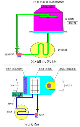 3、 冷却水系统化学清洗(含主机冷凝器、吸收器铜管簇、冷却塔的清洗)